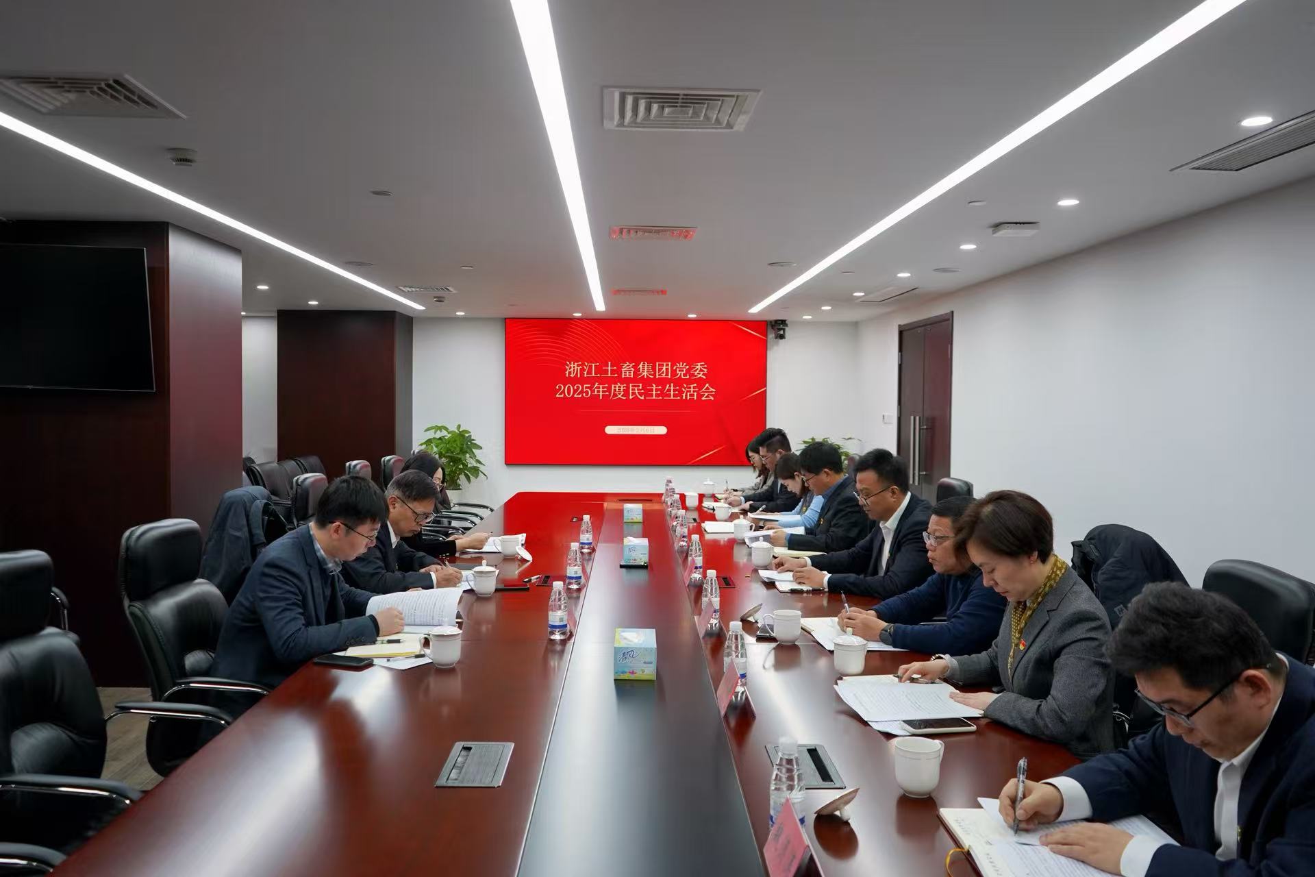 2月6日,浙江土畜党委召开2025年度党员领导干部民主生活会。省国贸集团副总经理、党委委员张勇,商贸部副总经理(主持工作)宋耀华,党委组织部(人力资源部)主管杜淼淼到会指导。公司党委书记、董事长张斌主持会议,党委领导班子成员参加会议。
