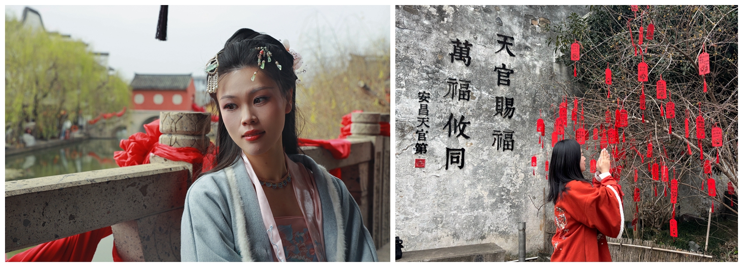 安昌古镇素有“碧水贯街千万居,彩虹跨河十七桥”之美誉。大家或穿汉服、或着国风服饰,倚桥远眺,执扇轻笑,徜徉于古街之上,看古桥、古纤道,感受典型的江南水乡风光。